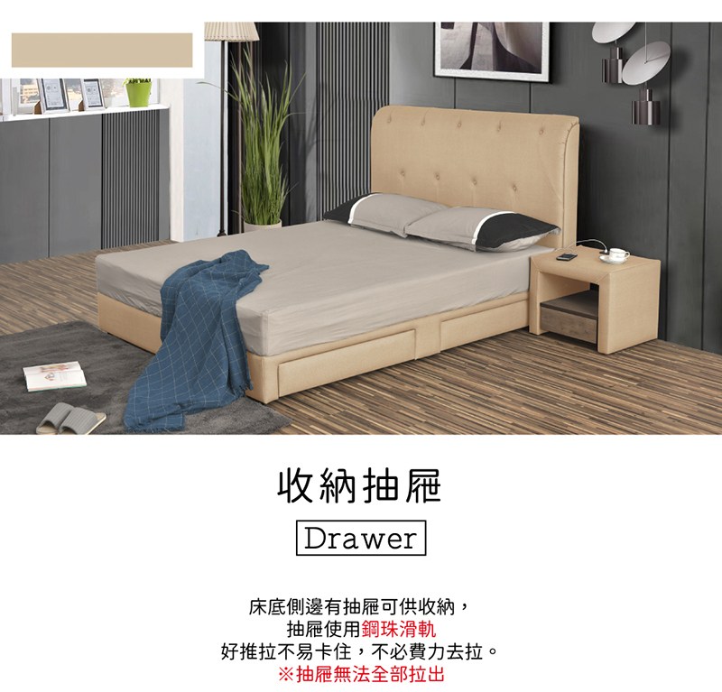 AS雅司-松樂5尺四抽收納床底-152x188x26cm--只有床底
