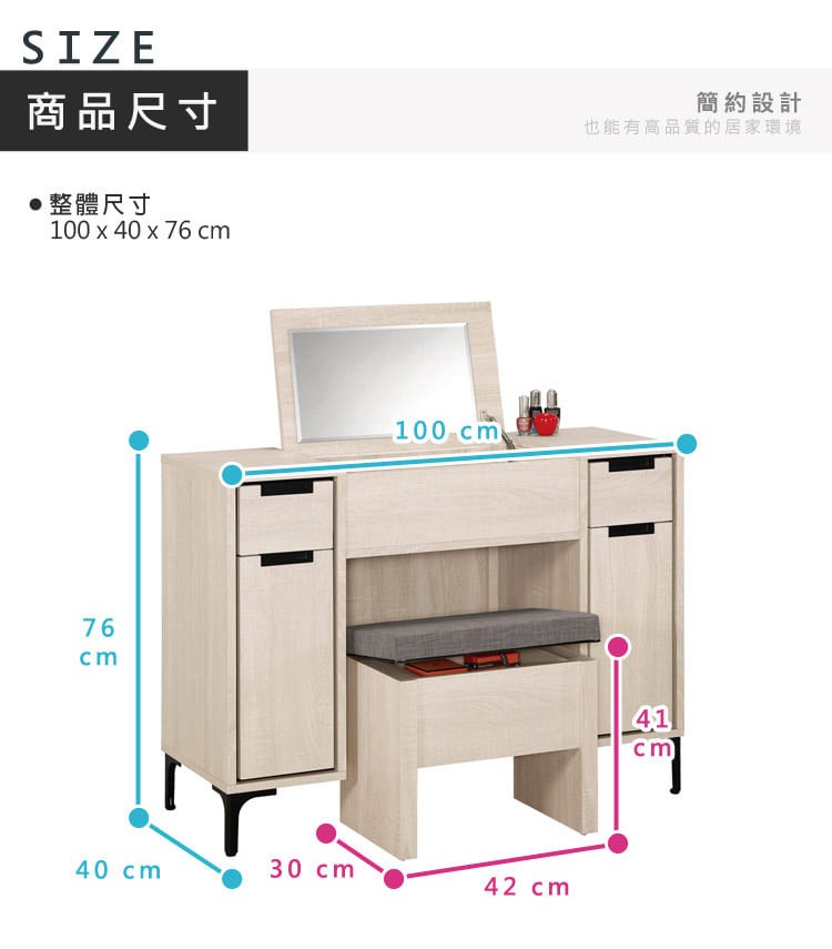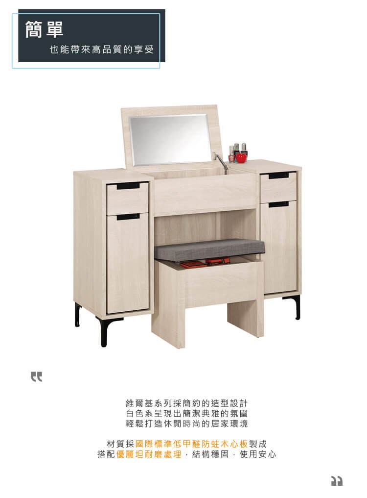 喬圓2.5尺掀式鏡台(含椅)