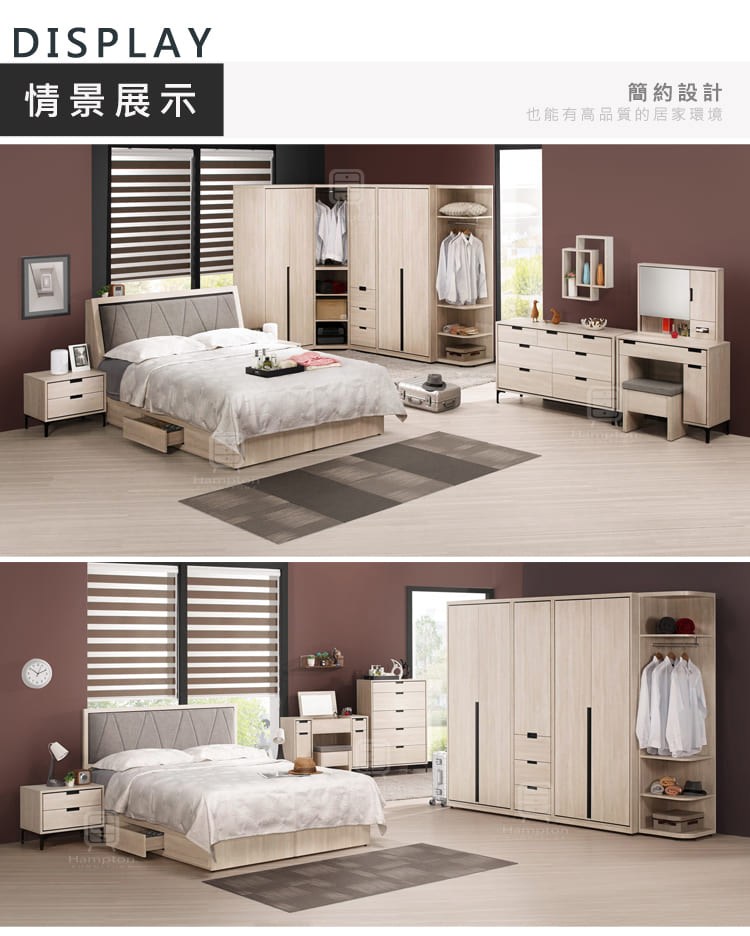 【Hampton 漢汀堡】埃理克白橡木2尺鏡台桌椅組
