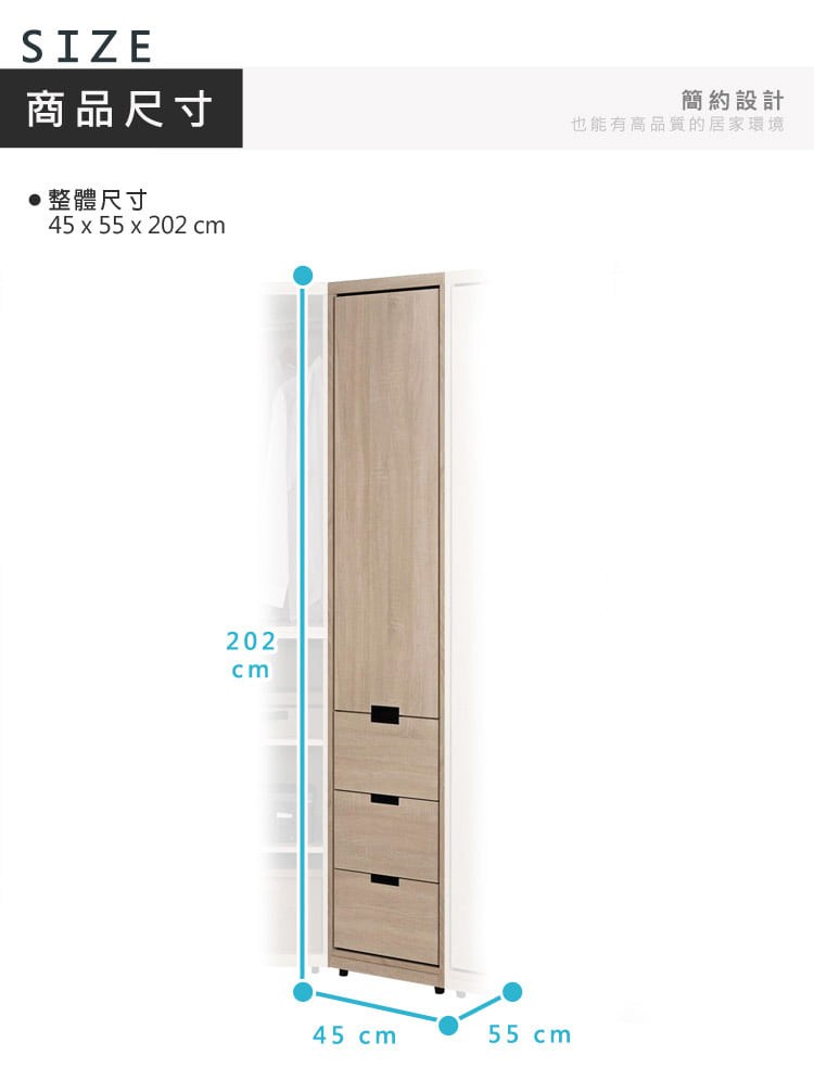 直人木業-TESS淺橡極簡風四抽滑門衣櫃120公分
