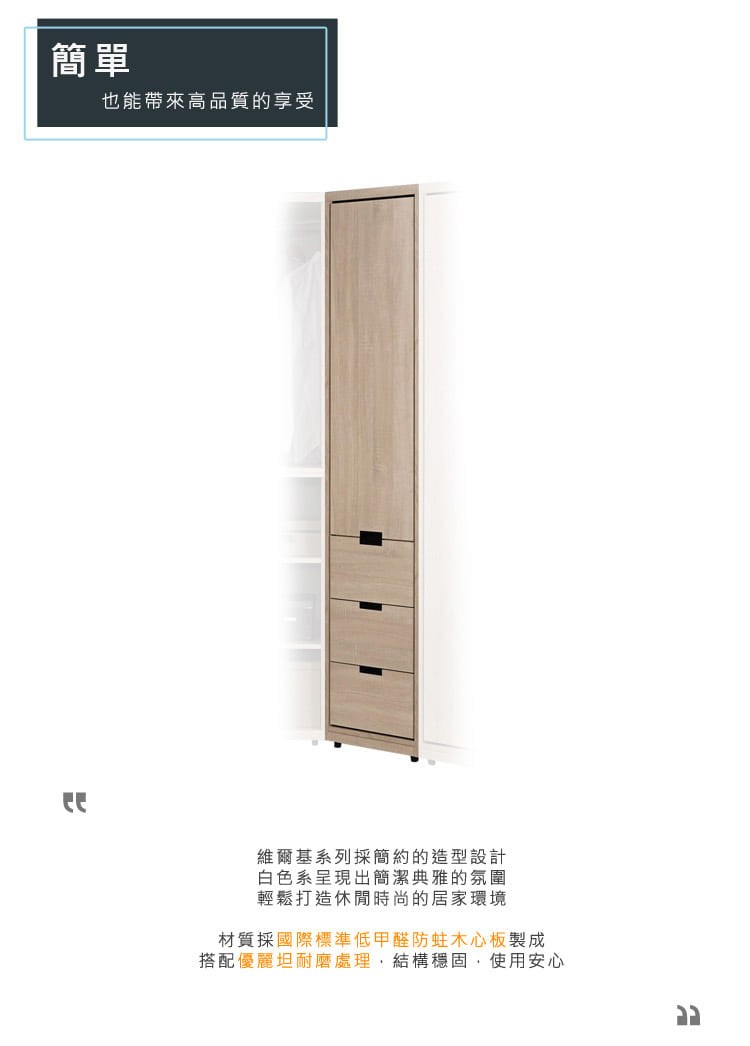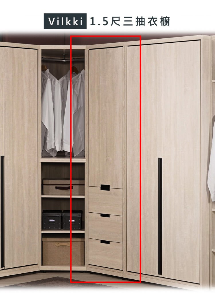 【Hampton 漢汀堡】維爾基1.5尺三抽衣櫥