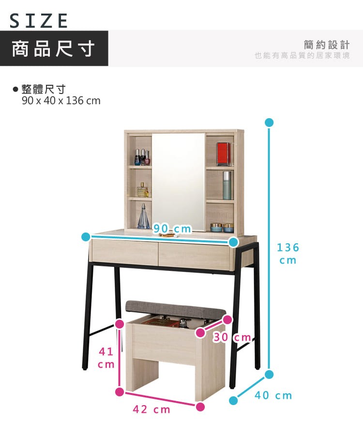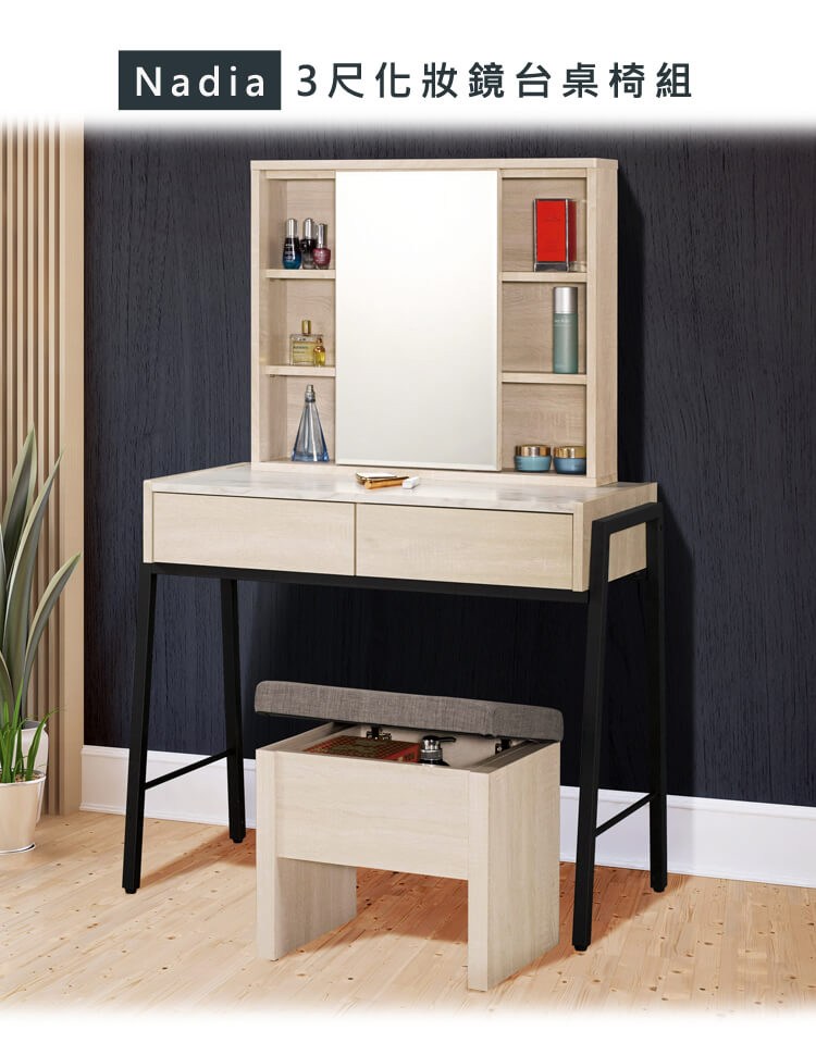 AS雅司-阿羅約3尺掀鏡台(含椅)-91x42x76cm