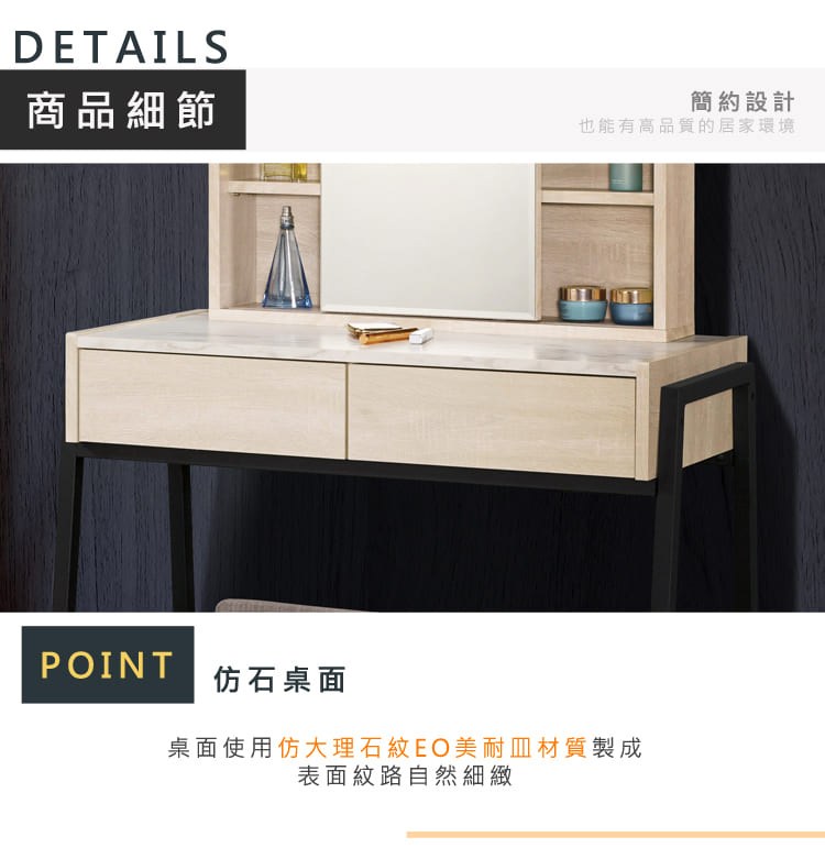 AS雅司-派提特3.3尺伸縮鏡台(含椅)-100x48x130cm