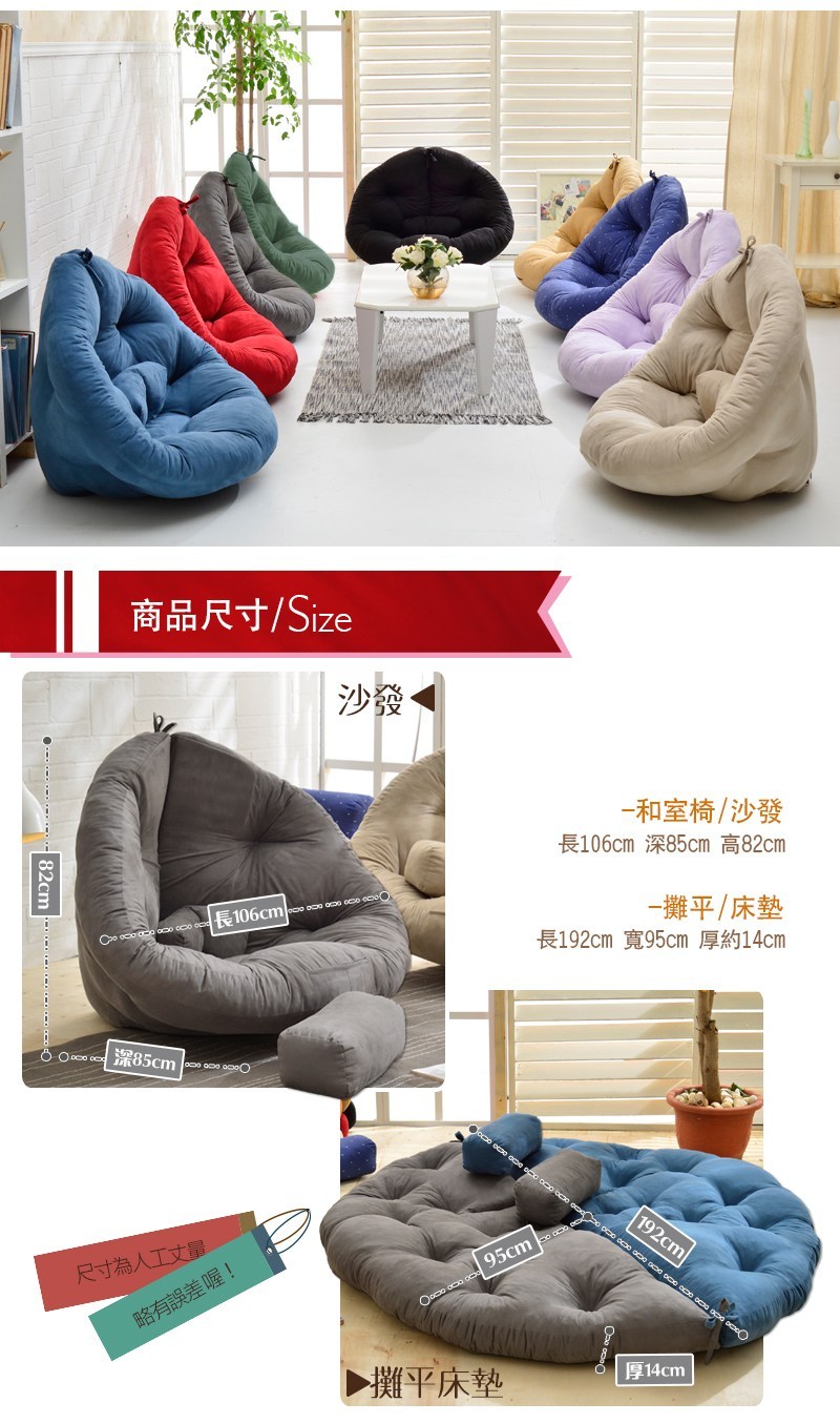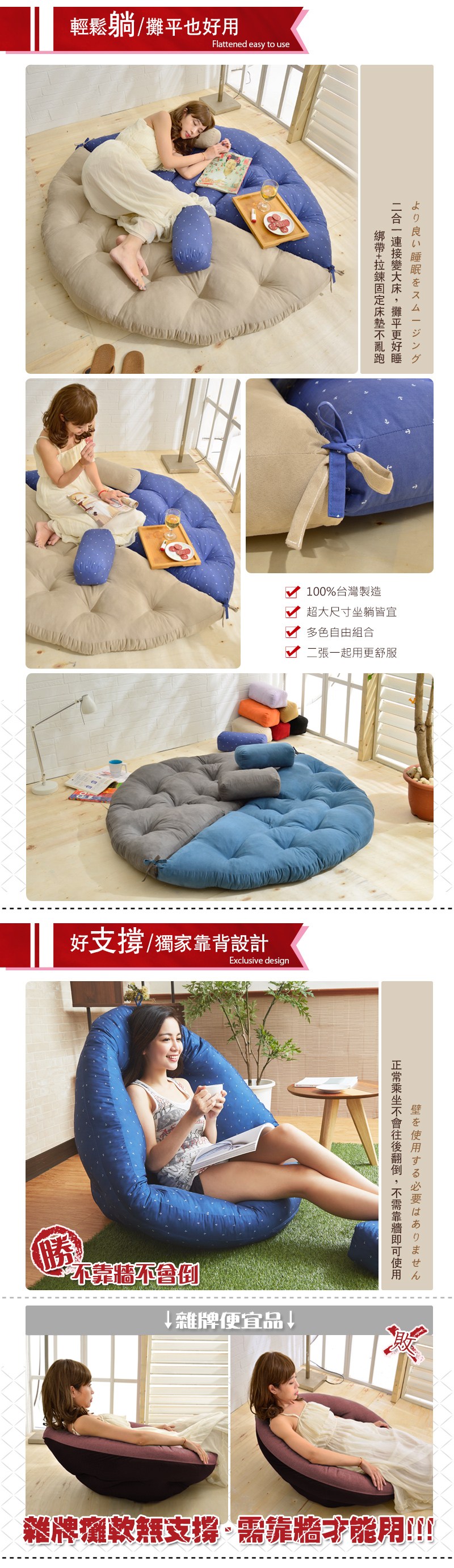 ‧可攤平當臨時床使用。單一張沙發攤開是半圓床;一次購買兩張~可結合成一張大圓床唷^_^