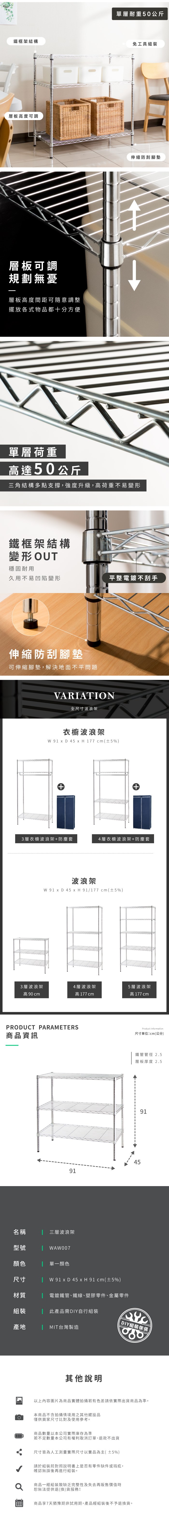 特力屋烤漆三層架寬90*深60*高160公分(白)