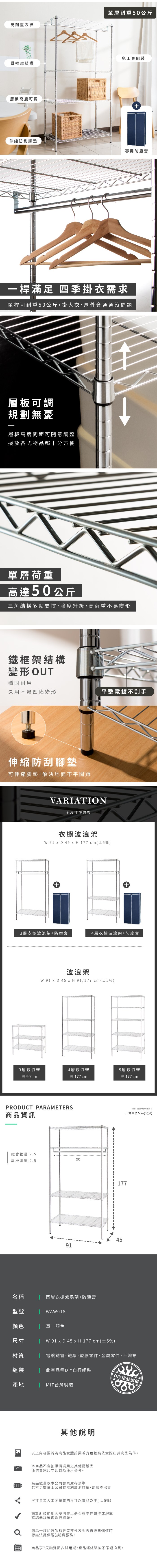 【客尊屋】小資型45X90X180Hcm 高耐重三層單衣桿衣櫥