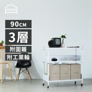 點我下載【Amos】90cm三層超穩耐重鐵力士+輪+2組圍籬擋板白色