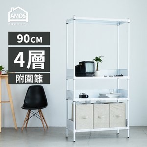 點我下載【Amos】90cm四層超穩耐重鐵力士置物架+3組圍欄檔板白色