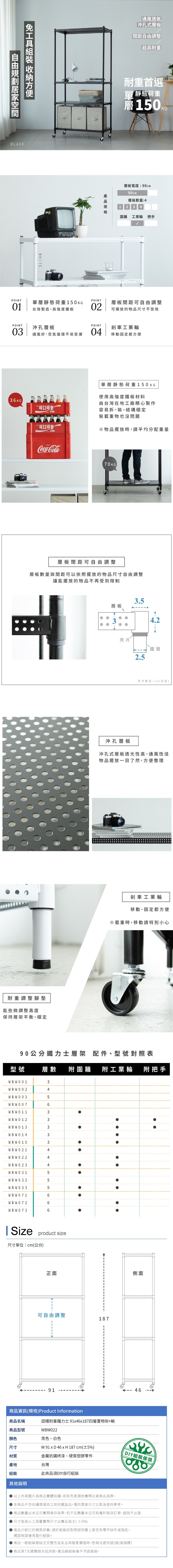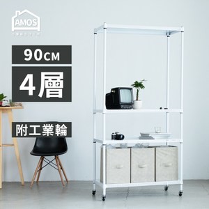 點我下載【Amos】90cm四層超穩耐重鐵力士+輪 增高置物架/收納層架白色