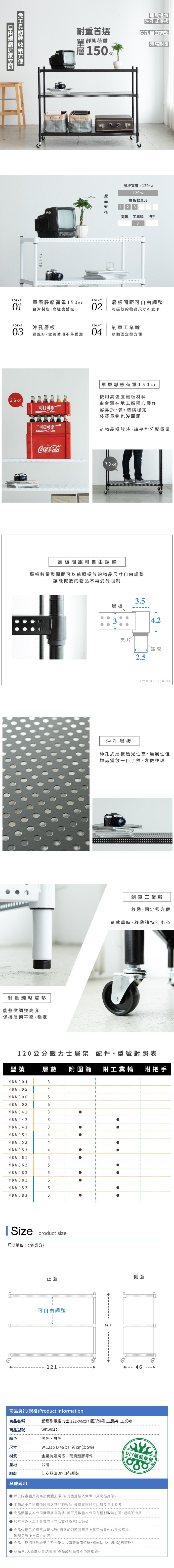 點我下載【Amos】120cm三層超穩耐重鐵力士+輪 增高置物架/收納層架白色