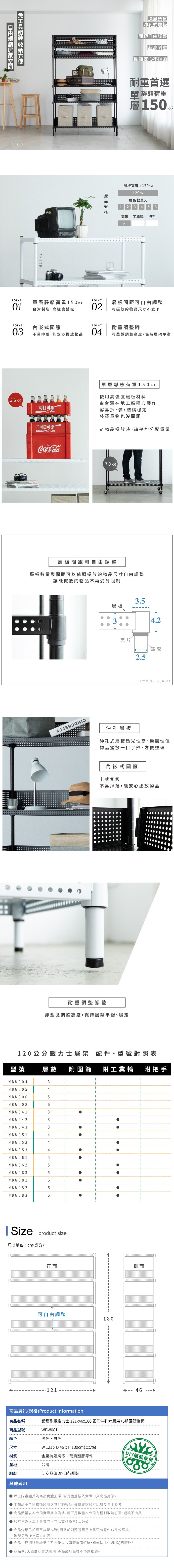 dayneeds 沖孔 60x45x180cm五層收納架(烤漆黑) 層架/置物架/儲藏架