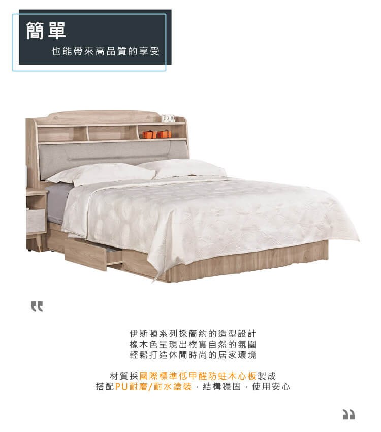 源氏木語西雅圖橡木原木色斜靠雙人5尺150x190夜燈低舖床架 Y90B28 (H014324397)