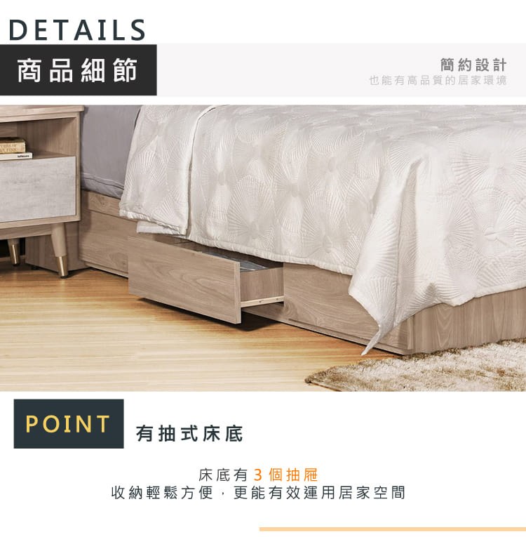 AS雅司-松樂5尺四抽收納床底-152x188x26cm--只有床底