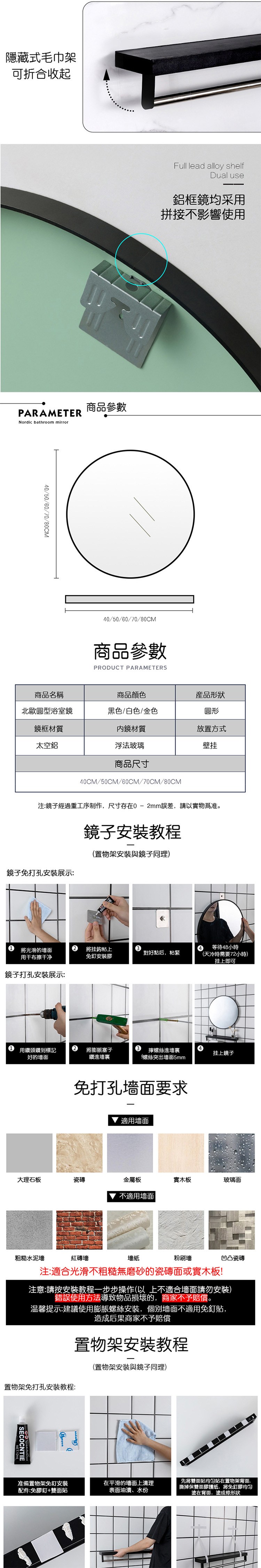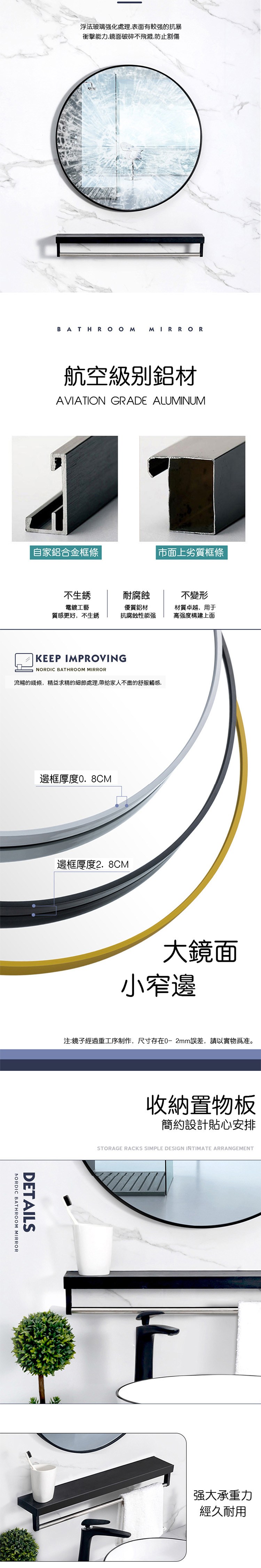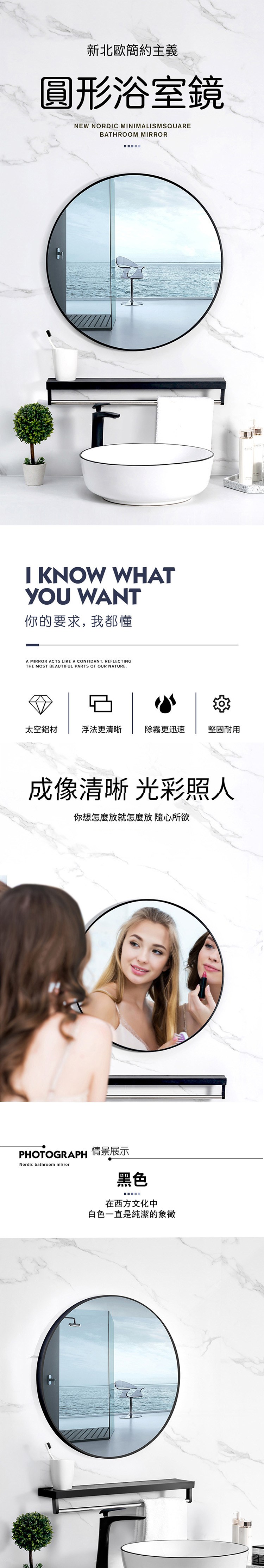 費歐家 北歐簡約太空鋁浴室圓鏡 40cm 黑色