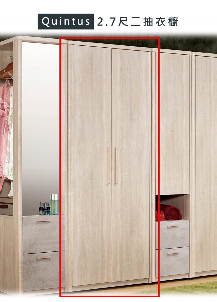 文創集 卡摩帝2.7尺二門雙吊桿衣櫃/收納櫃-80.5x55x202cm免組