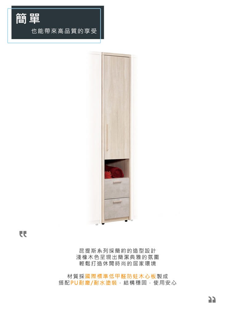 Hampton 漢汀堡 希凱1.5尺二抽左桶衣櫥