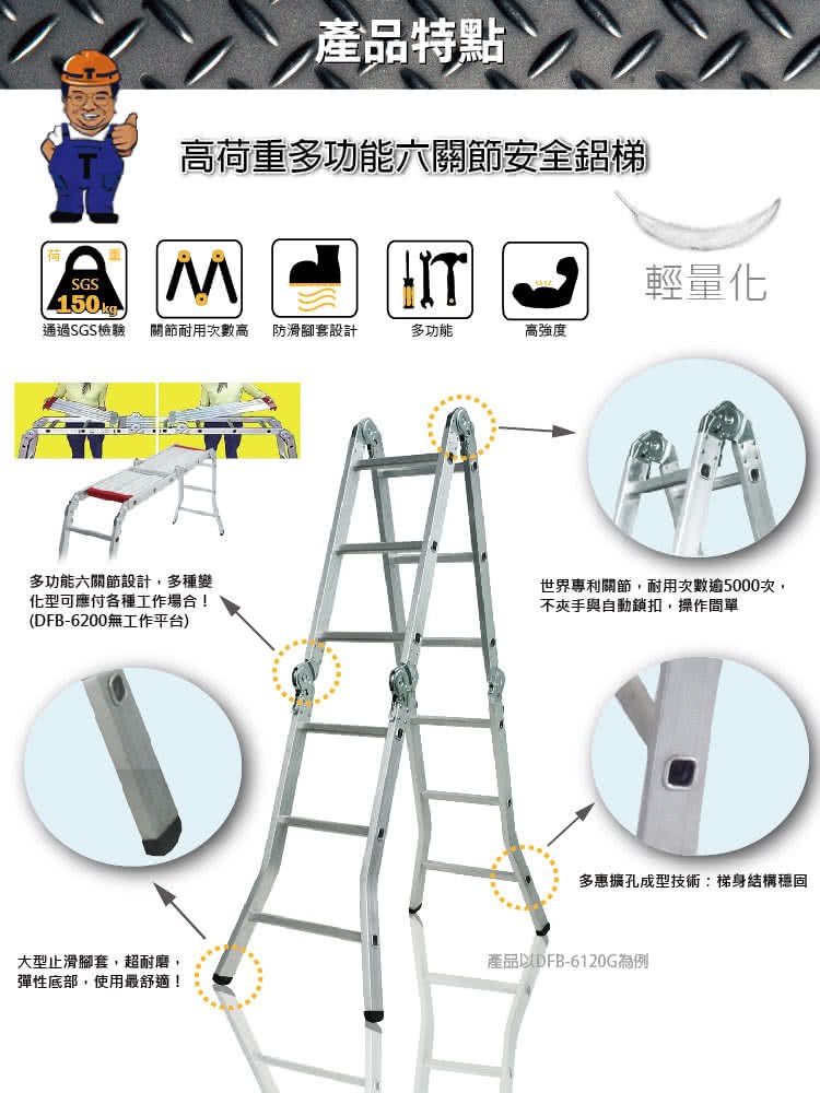 LOGIS邏爵 家用摺疊梯/五層梯/鋁製扶手梯/防滑梯/工作梯
