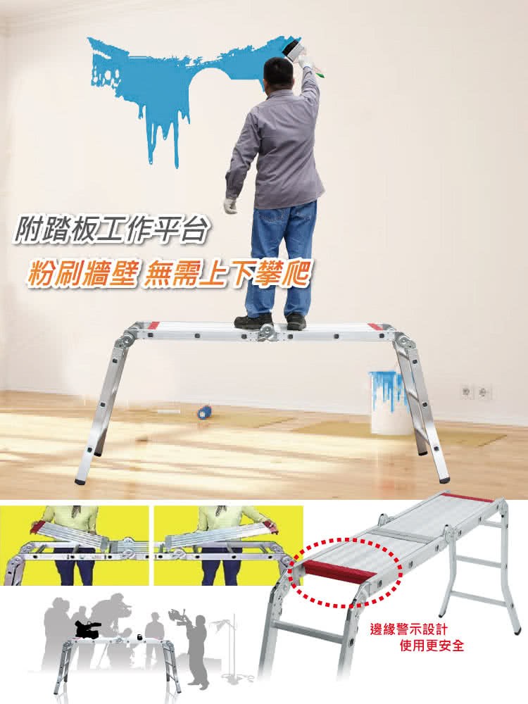 【Hasegawa 長谷川工作梯】日本設計四腳可伸縮 拉梯/A字梯兩用梯 RYZ-21