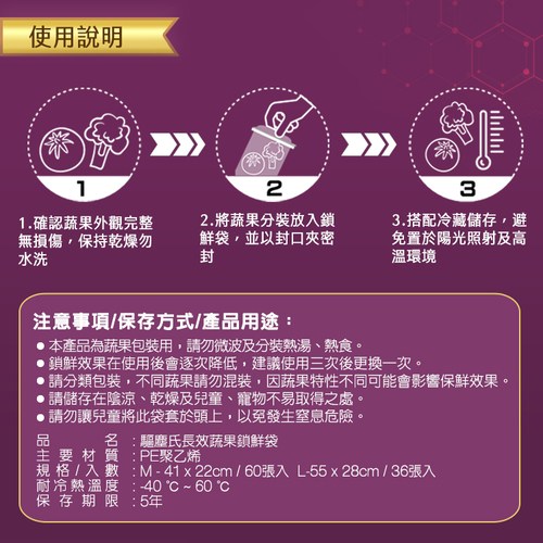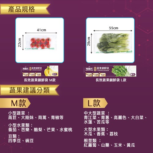 驅塵氏 長效蔬果鎖鮮袋 M尺寸 41x22cm 60入