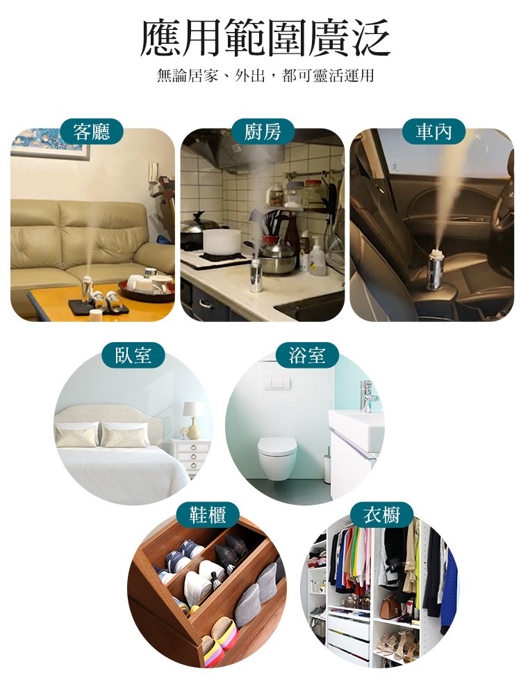 客廳、廚房、車內、臥室、浴室、鞋櫃、衣櫥...等