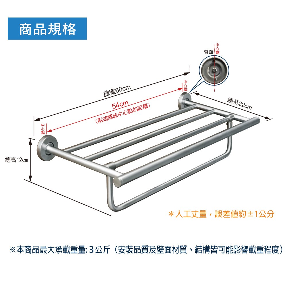DAY&DAY 日日家居 絲光毛巾置衣架 304不鏽鋼 650 x 220 x 120mm 銀色 1個