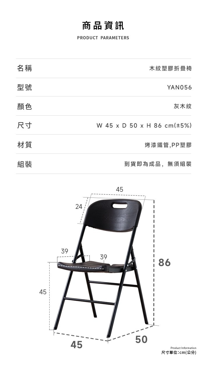AMOS 木紋塑膠折疊椅 灰木紋 YAN056 灰色 1個