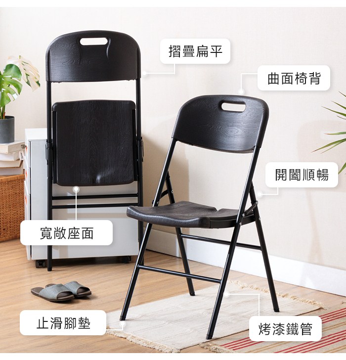 天秤座折合椅 / 烤漆 / 塑鋼摺疊椅 折合椅(黑色) 椅子 展場 活動椅 收納椅 耐用 台灣製造