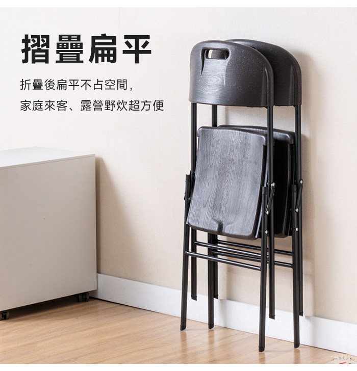 【Amos】木紋塑膠折疊椅灰木紋