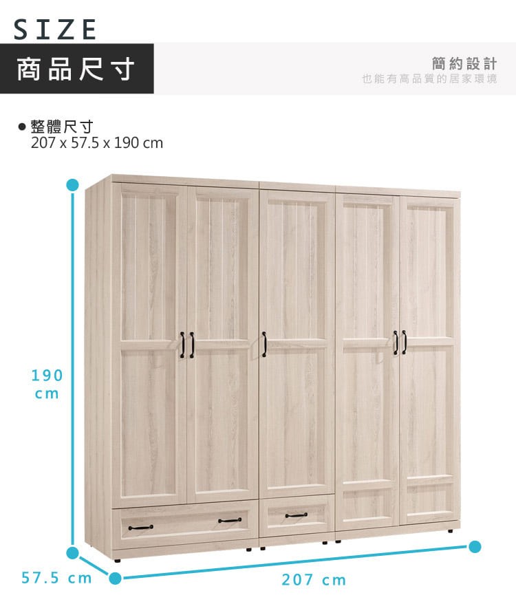 Homelike 喜家居6.9尺大衣櫃(24035)-207x 58 x190 公分