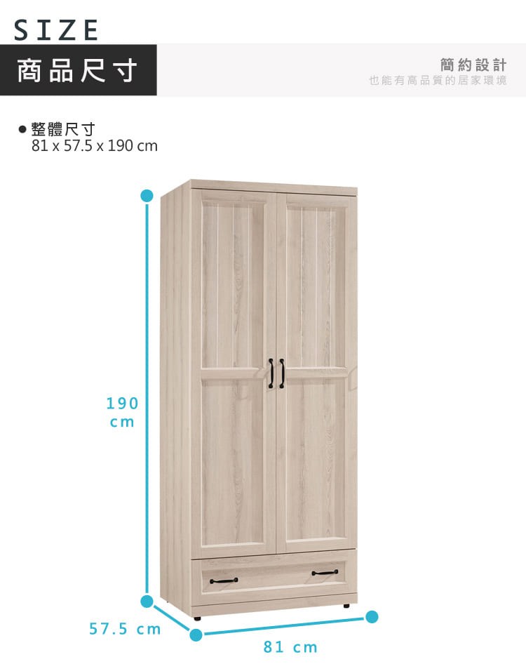 AS雅司-麗華雙色2.5尺二抽開門衣櫥-75×57×172cm