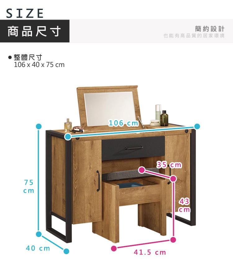AS雅司-格納爾2.7尺掀鏡台-含椅-80*40*75cm