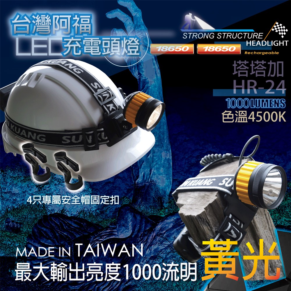 台灣阿福塔塔加黃強光織帶單體頭燈H24S