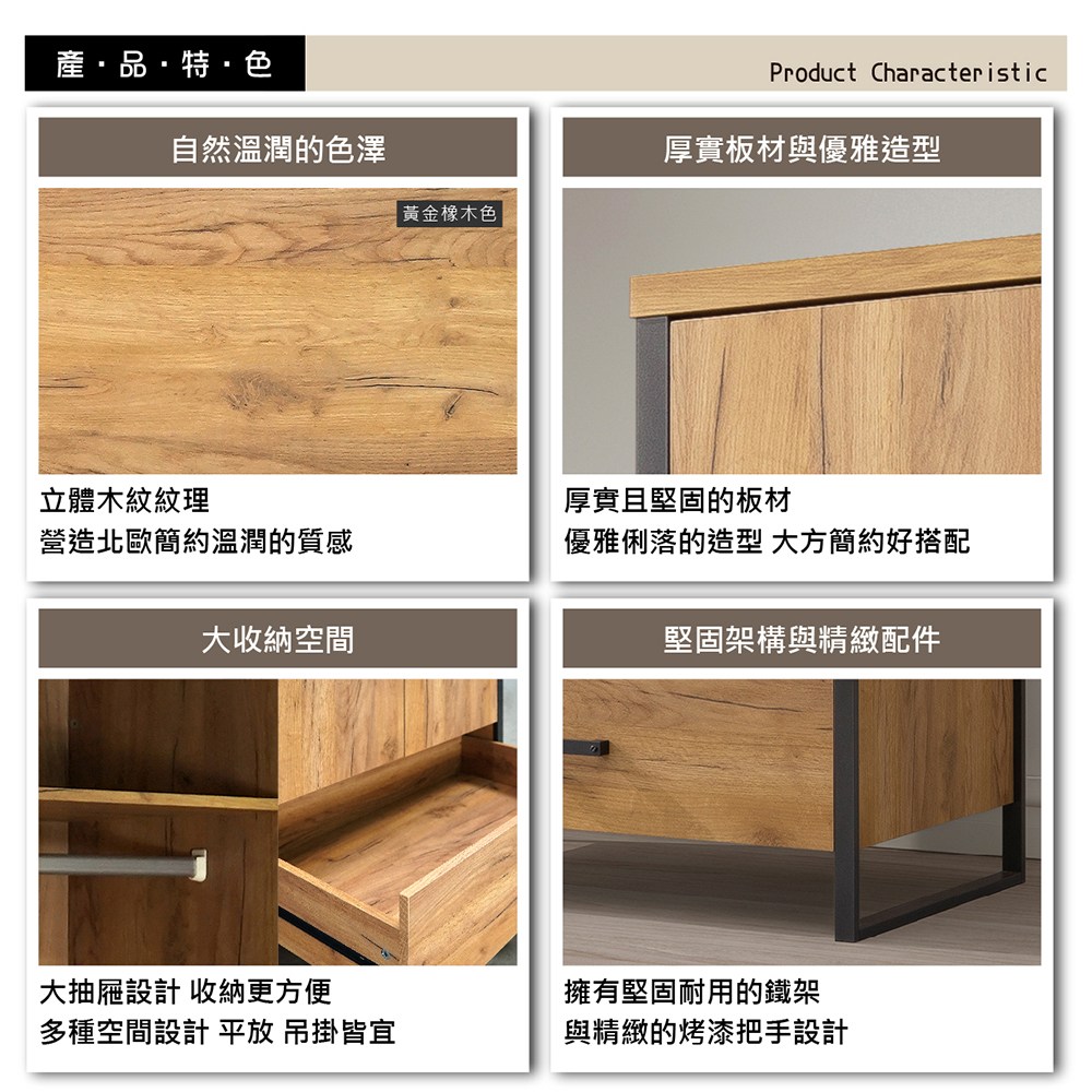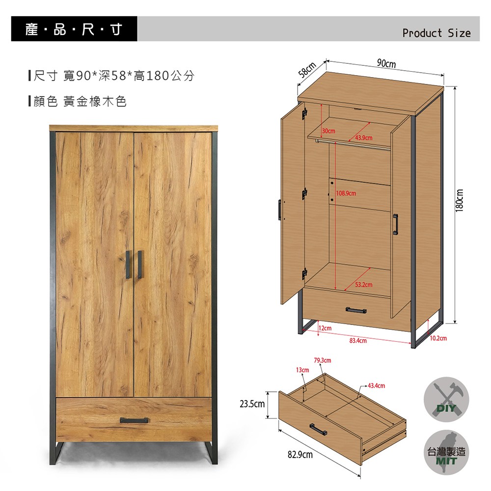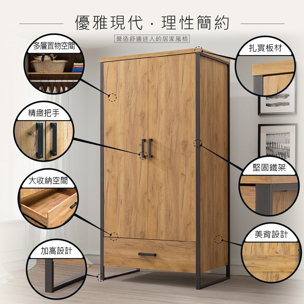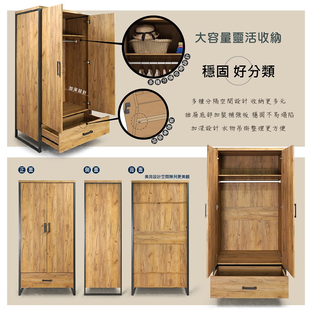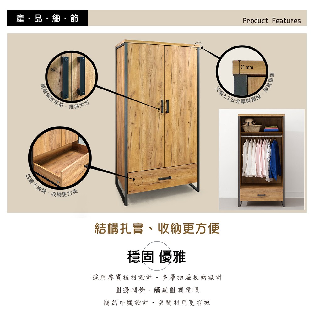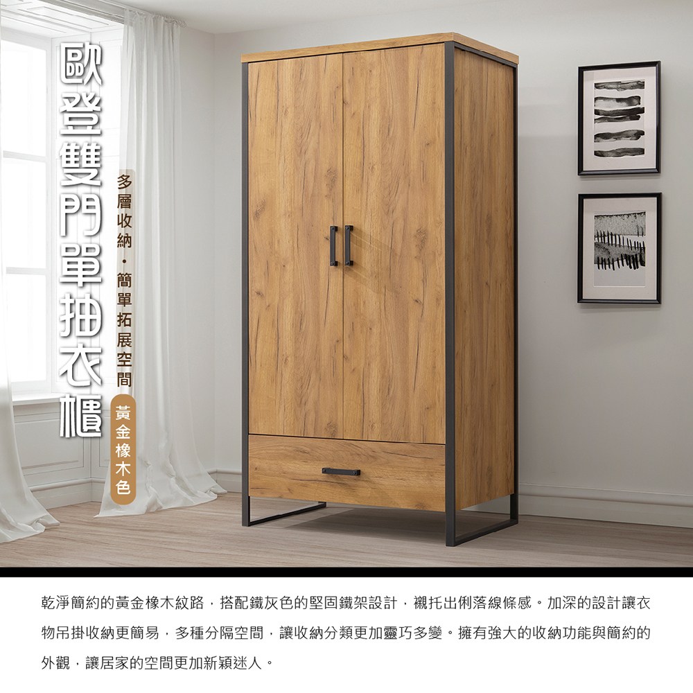 歐登雙門單抽衣櫃 收納櫃 黃金橡木色