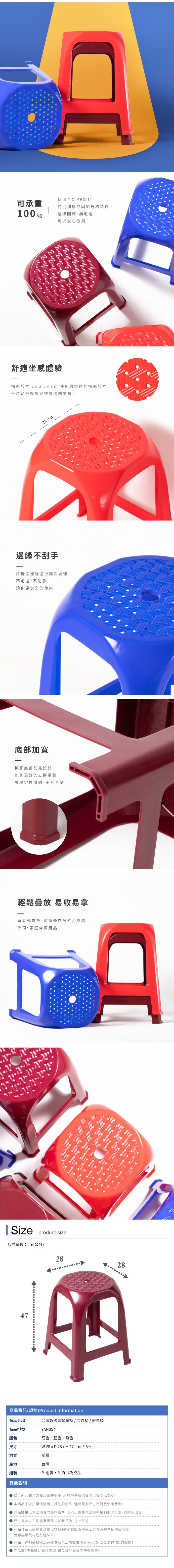 豪華點心椅 台灣製 PP材質 28.5x28.5x47.5cm 3色隨機 紅色 1組