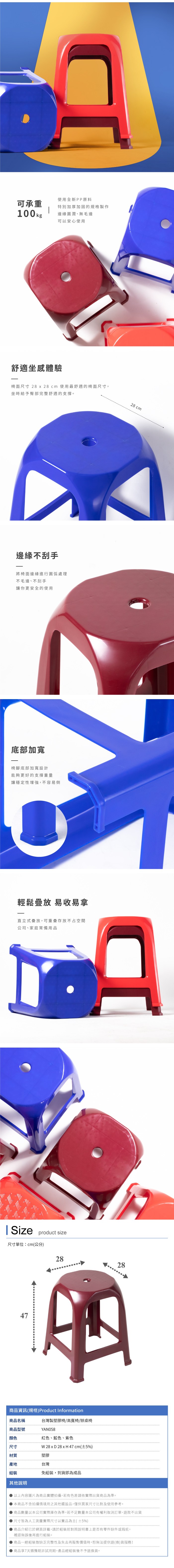 豪華點心椅 台灣製 PP材質 28.5x28.5x47.5cm 3色隨機 紅色 1組