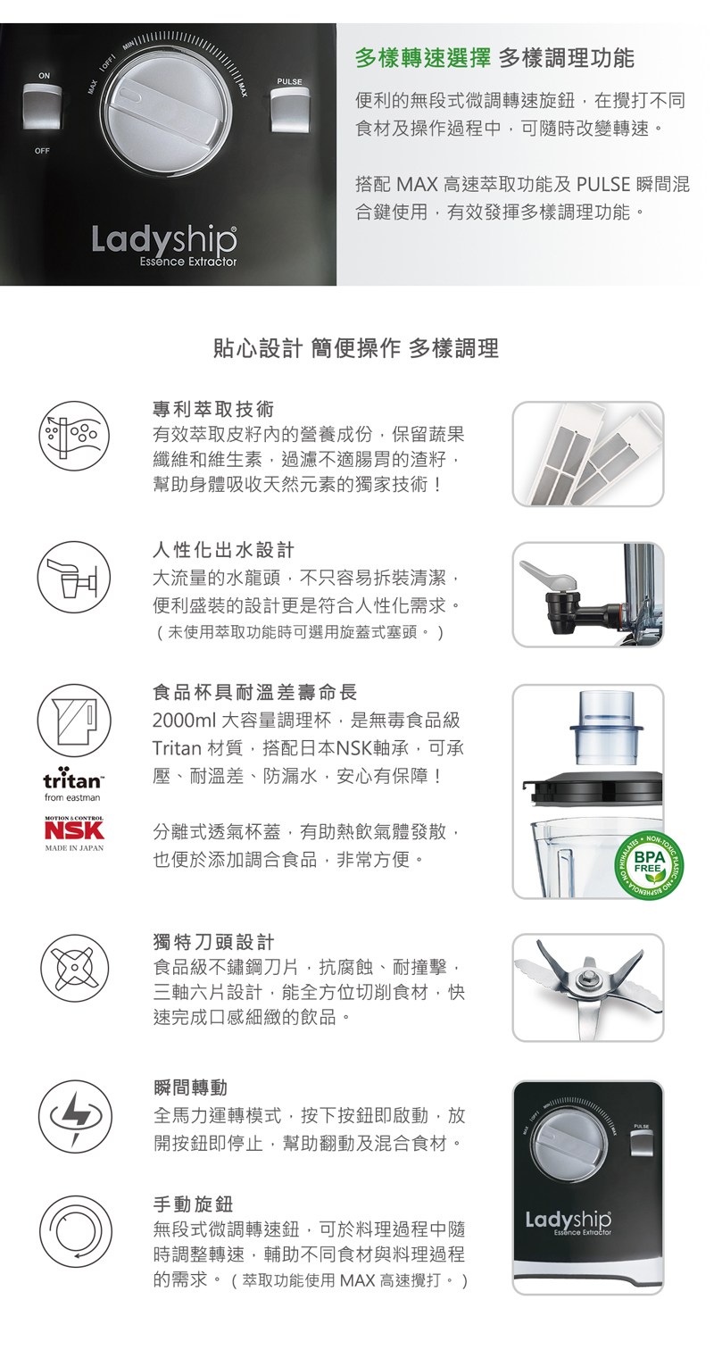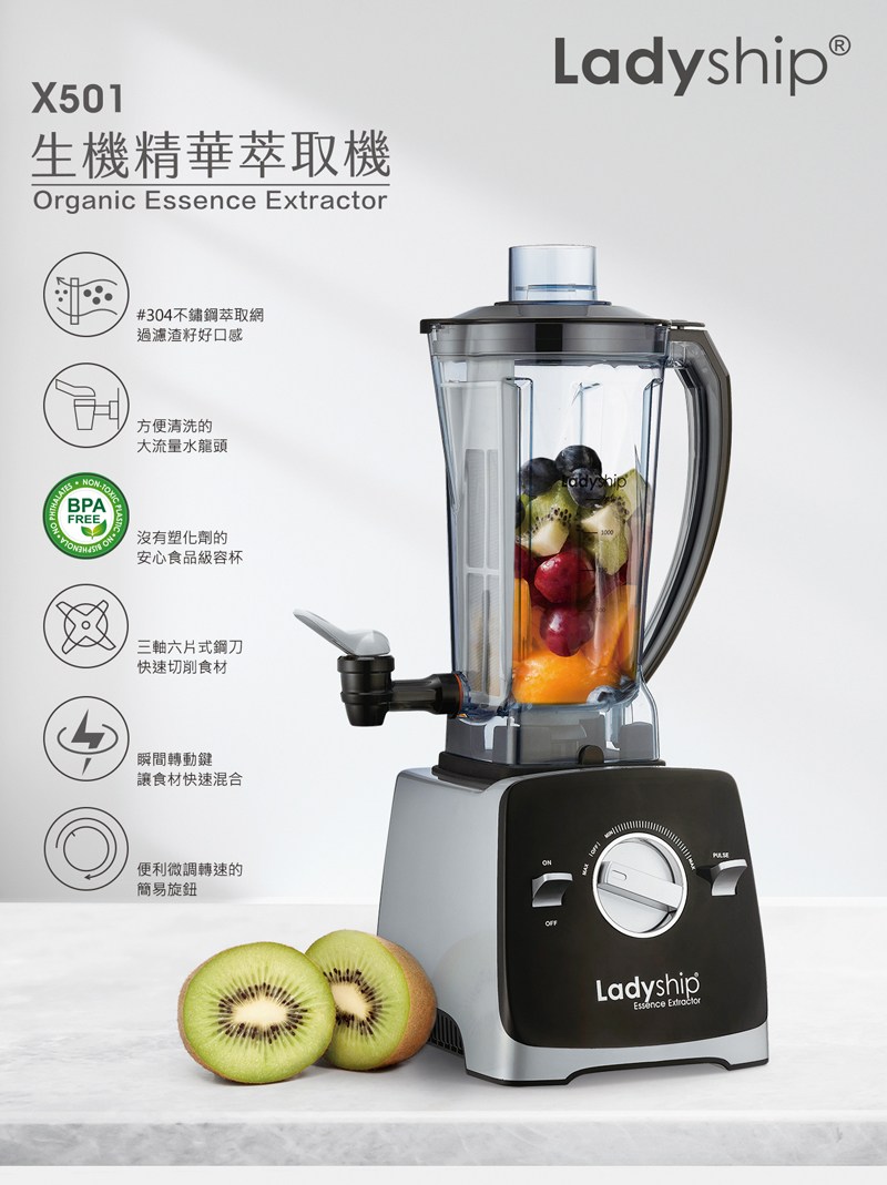 貴夫人 生機萃取果菜機 X-501 專利萃取蔬果調理機 果汁機 Tritan食品級+日本軸承 無毒耐用