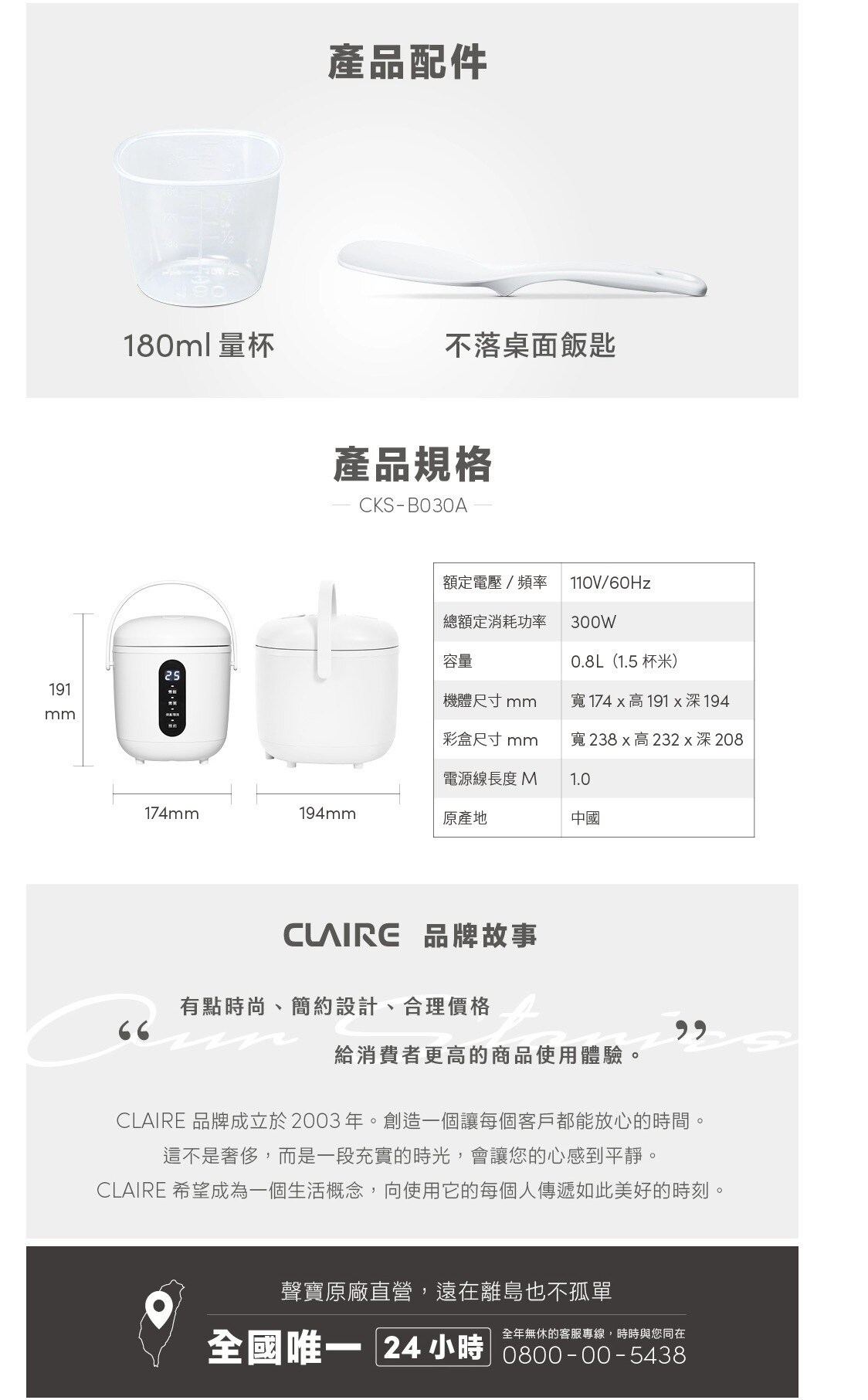 CLAIRE mini cooker 電子鍋 CKS-B030A 北歐白 CKS-B030P 櫻花粉