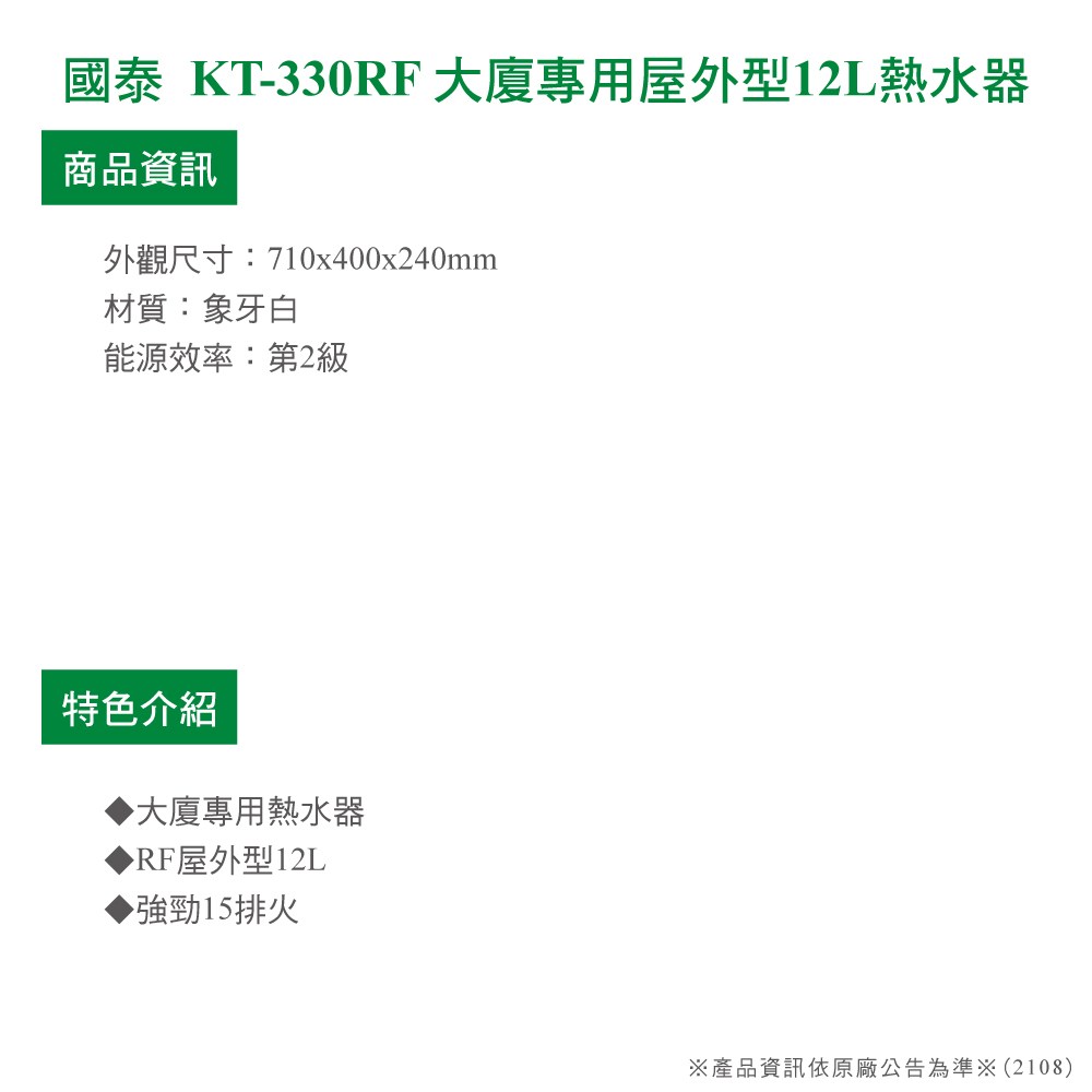 國泰屋外型12L瓦斯熱水器KT-330RF(LPG/RF式)_桶裝【北北基桃】