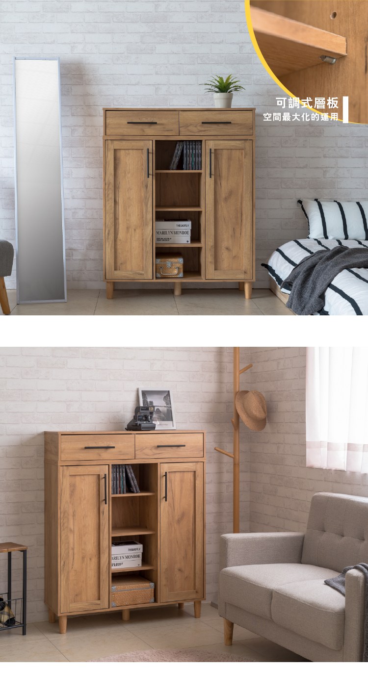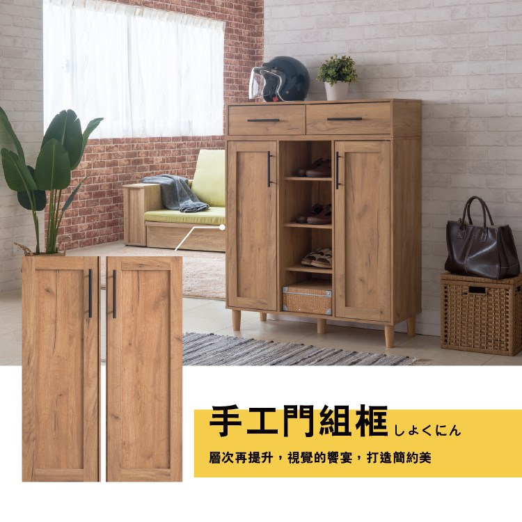 【RICHOME】艾丁雙門一抽鞋櫃原木色