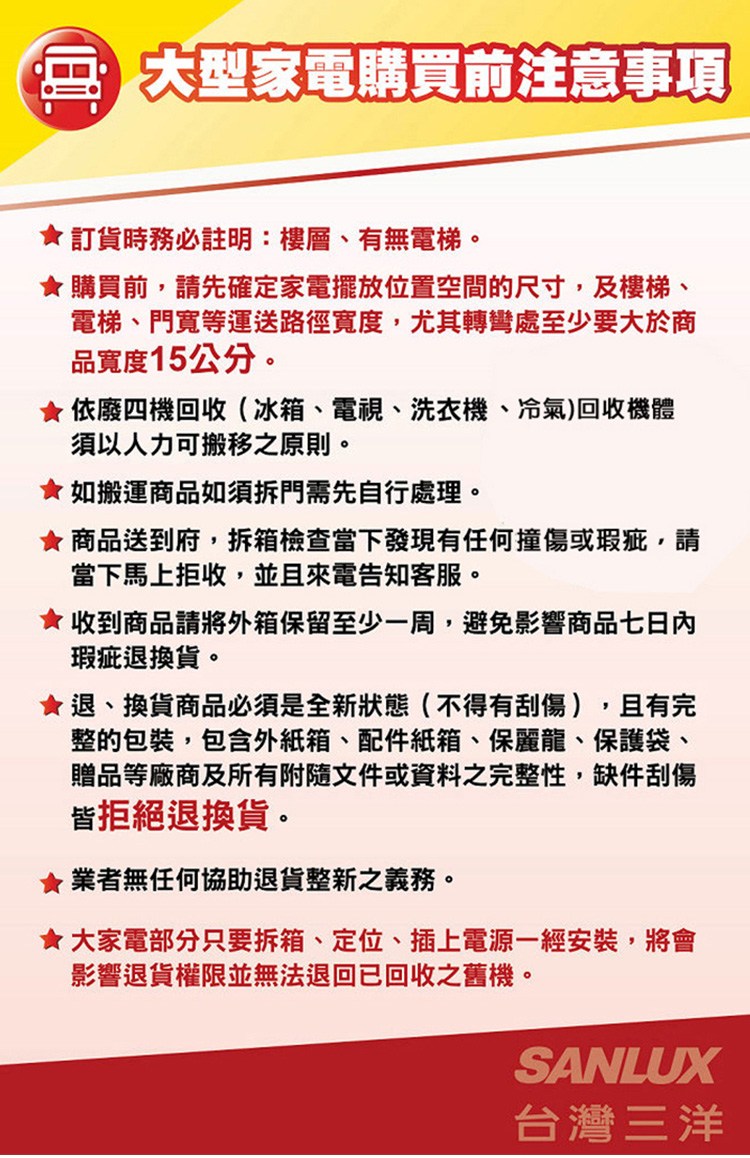 ◎如欲家電旺季或任何配送異常狀況會盡快告知,配送時間則以物流聯絡約定時間為準