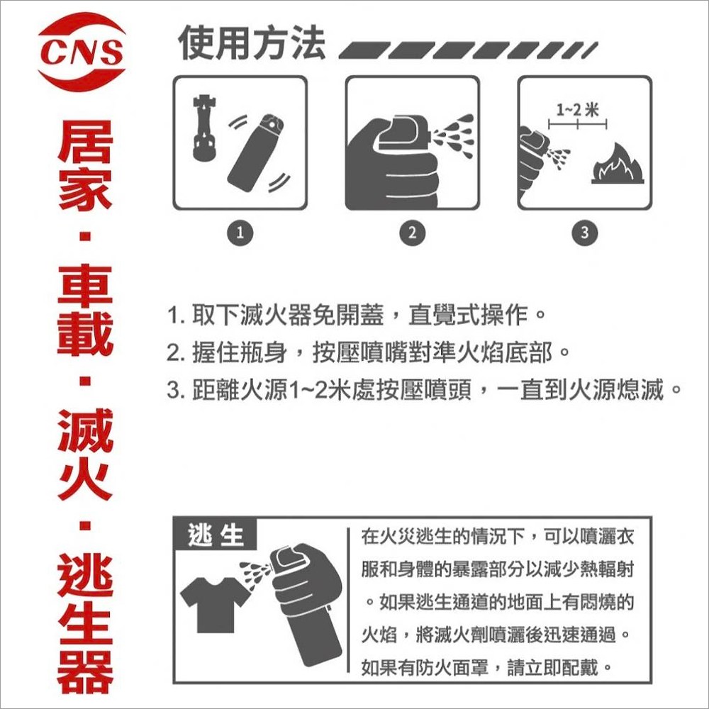 預防起火燃燒後,可以噴塗全身,作為逃生準備。操作簡單,家中老人及小孩都會使用,滅火就像噴殺蟲劑一樣簡單。
