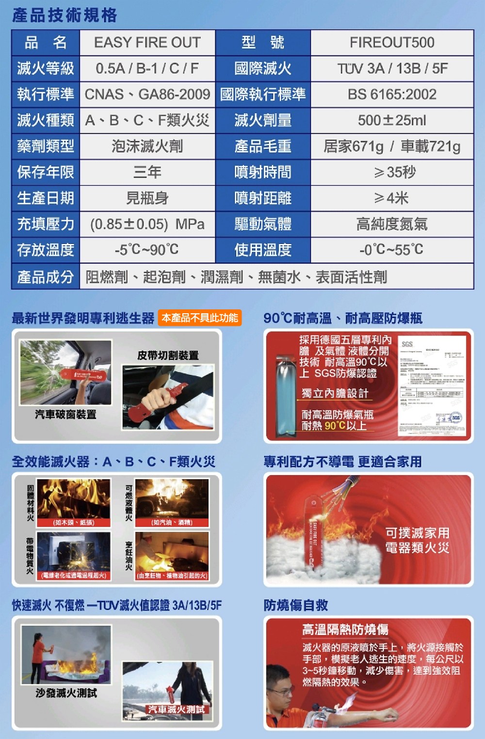 EASY FIREOUT 滅火神器 簡易式水基型滅火器 全效滅火 多項專利 免年檢