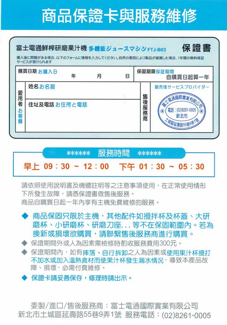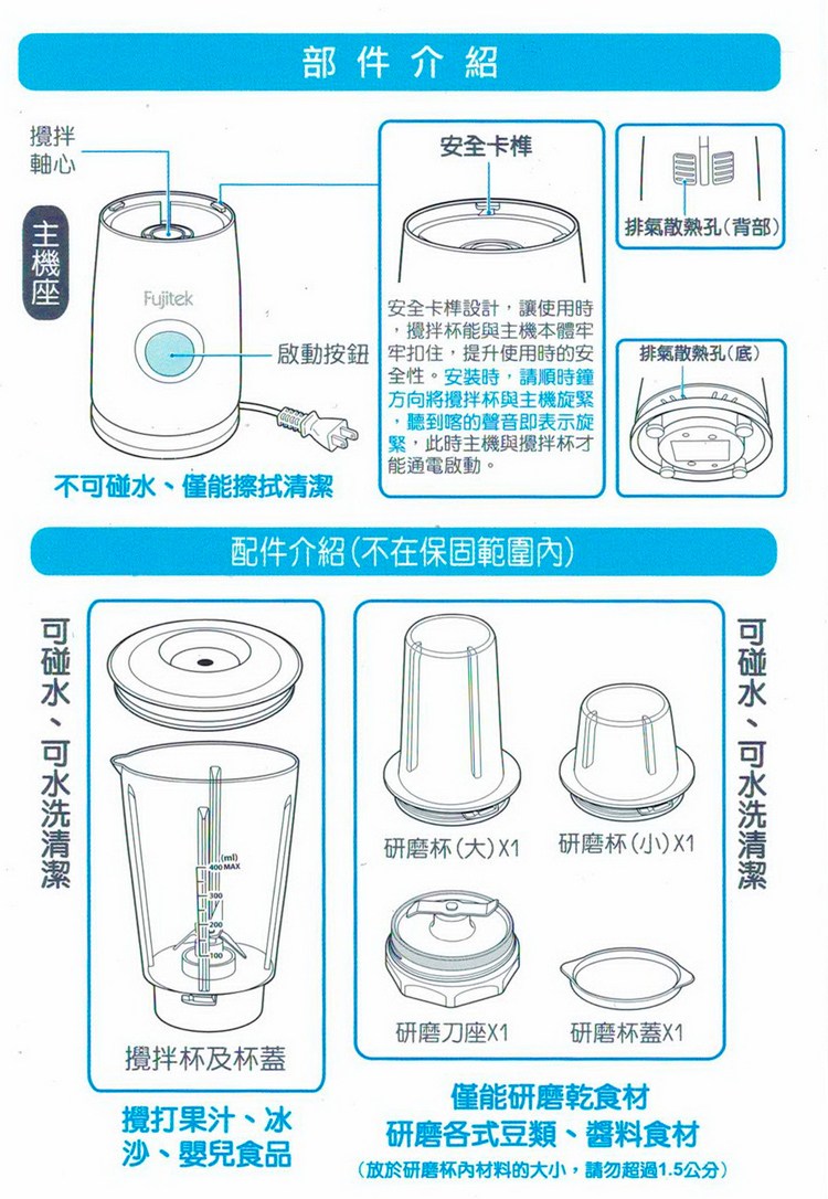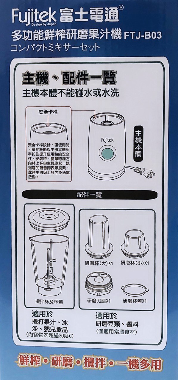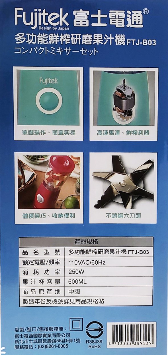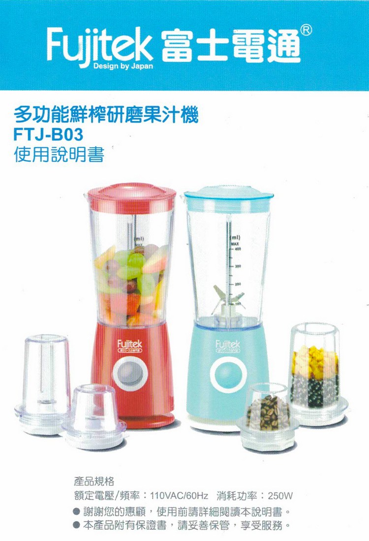 Fujitek富士電通600ML多功能鮮榨研磨果汁機 FTJ-B03~顏色隨機出貨