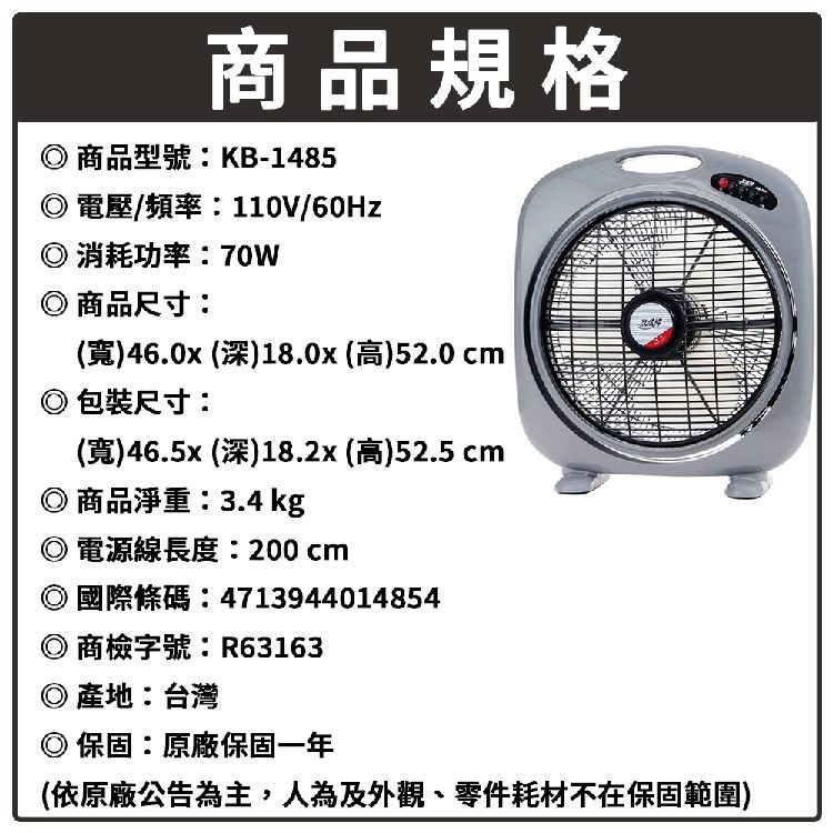 友情牌 14吋手提箱扇.涼風扇.電風扇.電扇 KB-1485 ~台灣製造