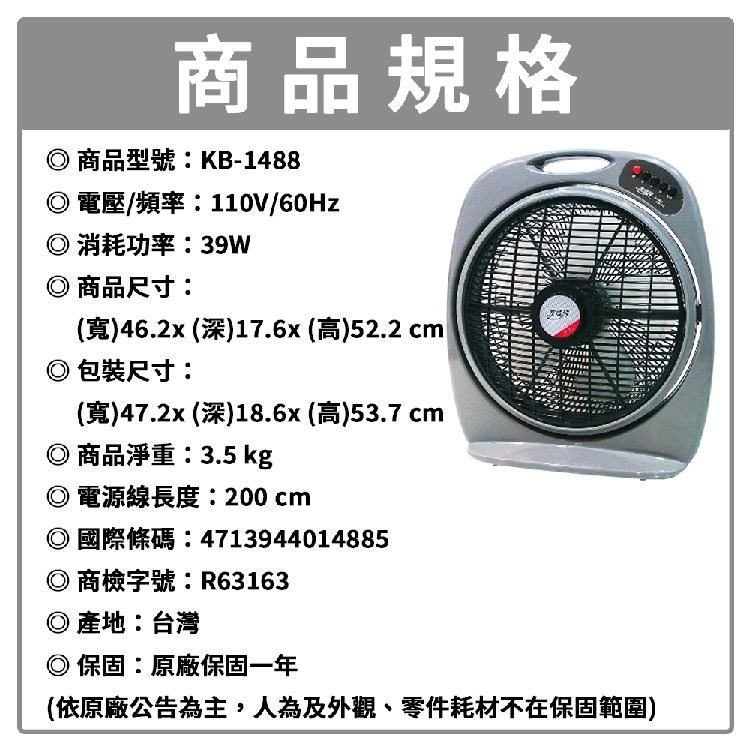 友情牌 14吋手提箱扇.涼風扇.電風扇.電扇 KB-1488 ~台灣製造