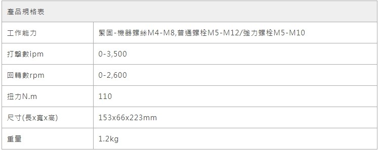 PANRICO 百利世 12V雙鋰電無碳刷衝擊起子機 2.0Ah鋰電池 160Nm大扭力 本體 + 2顆電池以上 1個