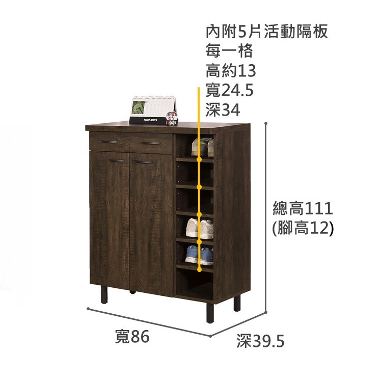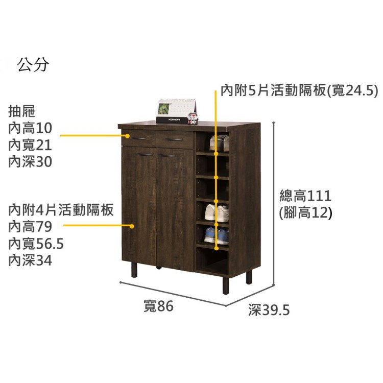尺寸規格 :寬 86 公分 X 深 39.5 公分 X 高 111 公分。