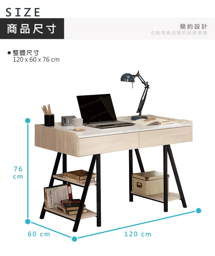 Boden-妮絲4尺二抽仿石面書桌/工作桌(桌下置物架型)