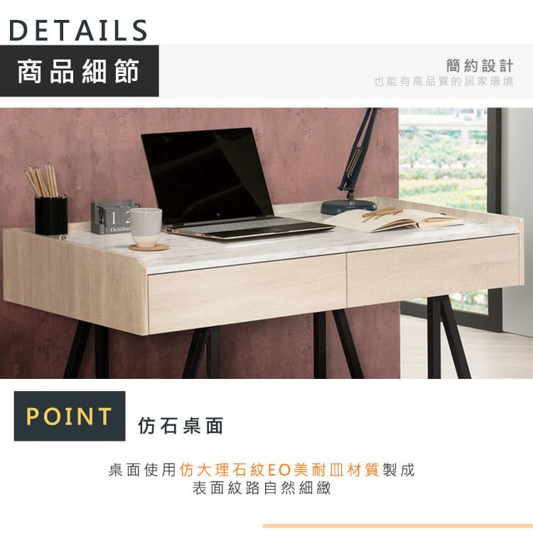 Boden-妮絲4尺二抽仿石面書桌/工作桌