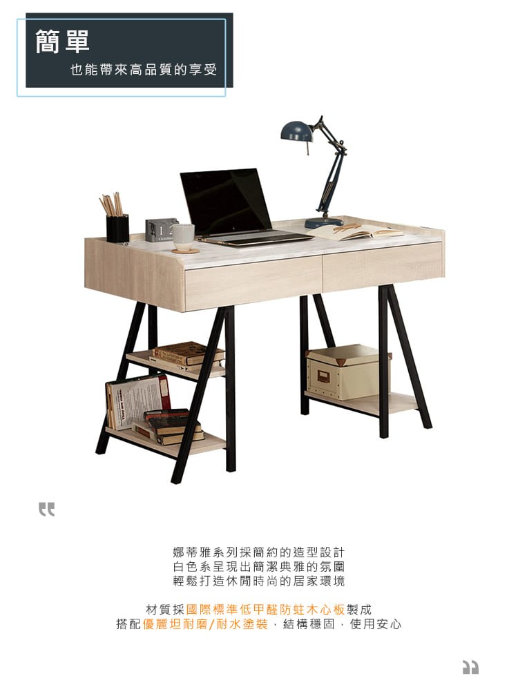 【Homelike】喜家居雪杉色2.7尺二抽書桌(2504)